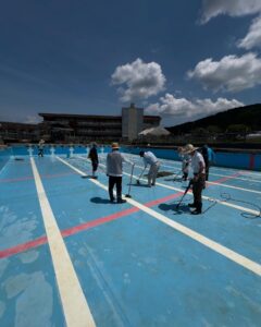 デッキブラシと高圧洗浄機を使いキレイな状態に仕上げました。掃除をお手伝いしてくださった皆さん、ありがとうございました。