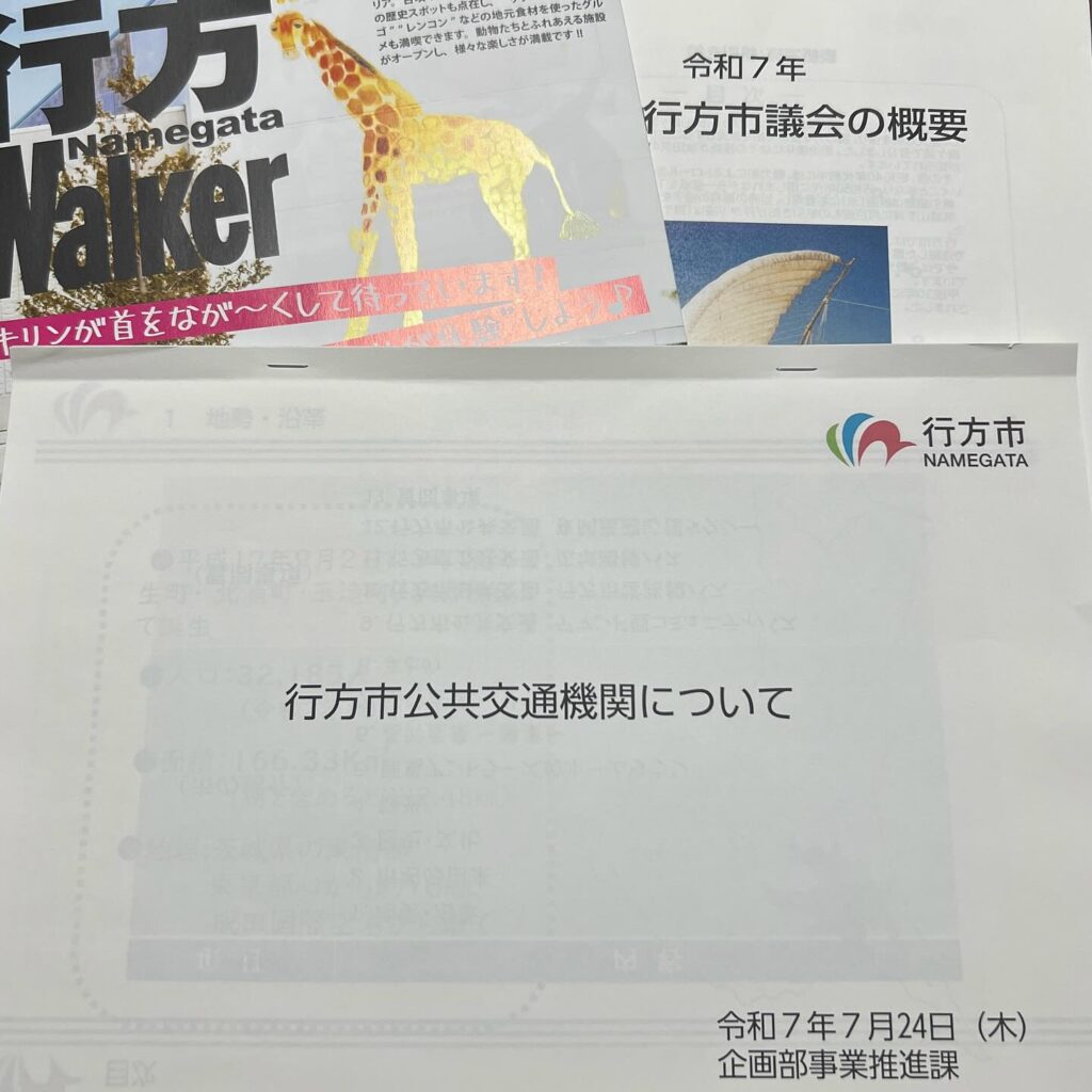 行方市では行方市公共交通機関について、企画部事業推進課の方々の説明をお聞きしました。