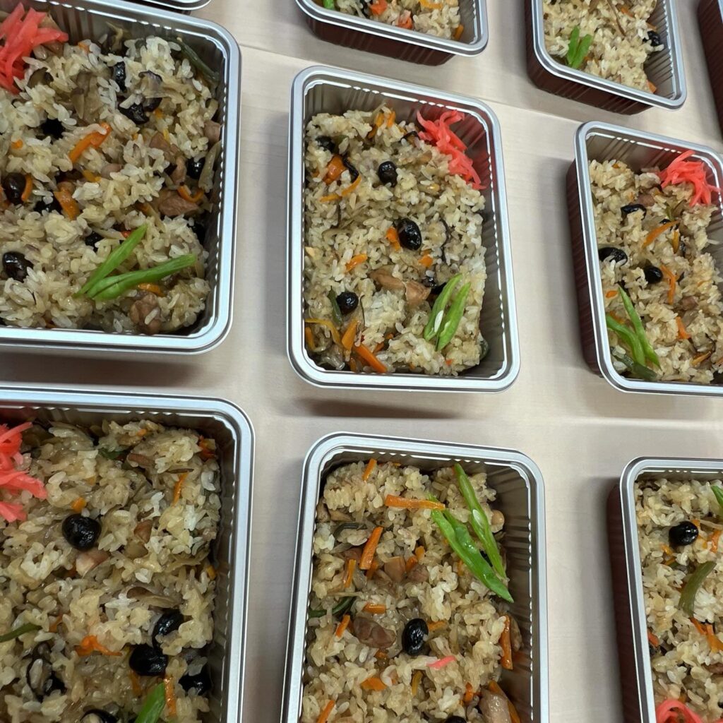 今回のメニューは、秋の味覚たっぷりの「山菜おこわ」です。