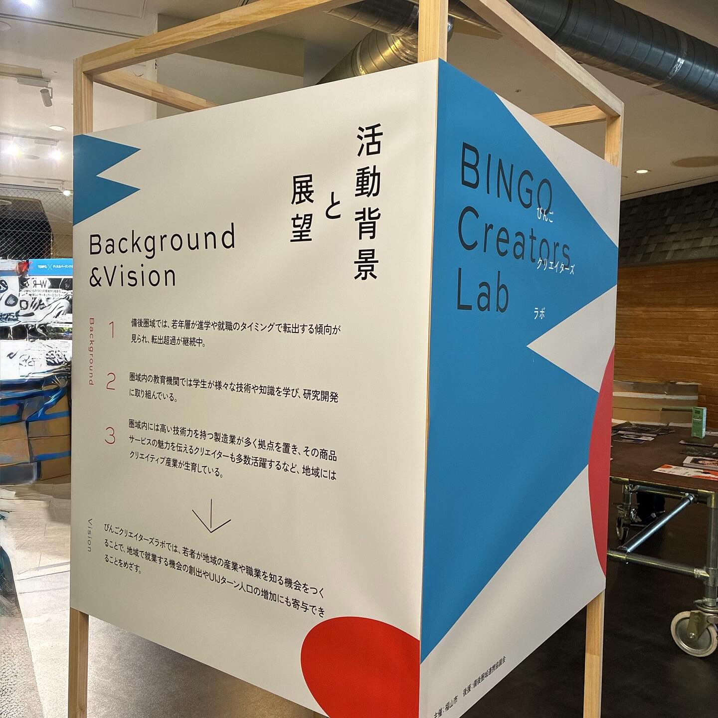 「びんごクリエイターズラボ」は、備後圏域のクリエイティブな人・モノ・コトが一堂に集まる交流イベントで、今回が初開催とのこと。 初回ということで小規模ではありましたが、ものづくりやデザイン、アートなど、地域にあふれるクリエイティブを見て、触れて、体験できる、とても良い機会となりました。