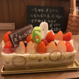 そして、まさかのサプライズケーキが登場。お店にいた他のお客様にも祝っていただき、本当に幸せなひとときでした。