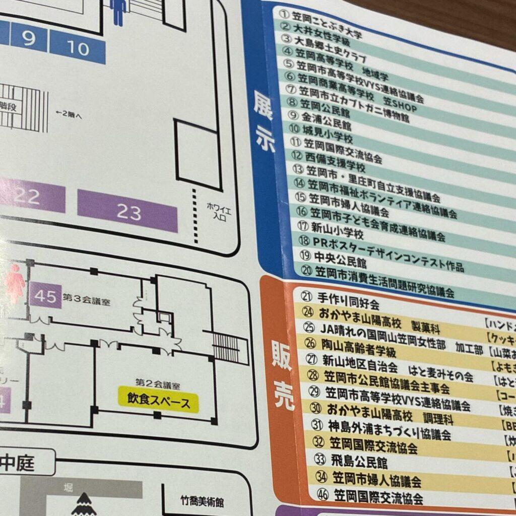 お昼には、笠岡市婦人協議会の温かい「うどん」と、笠岡国際交流協会のスパイシーな「ハラルカレー」をいただき、お腹も大満足です。体験コーナーでは「笠岡手引きの会」のブースへ。
